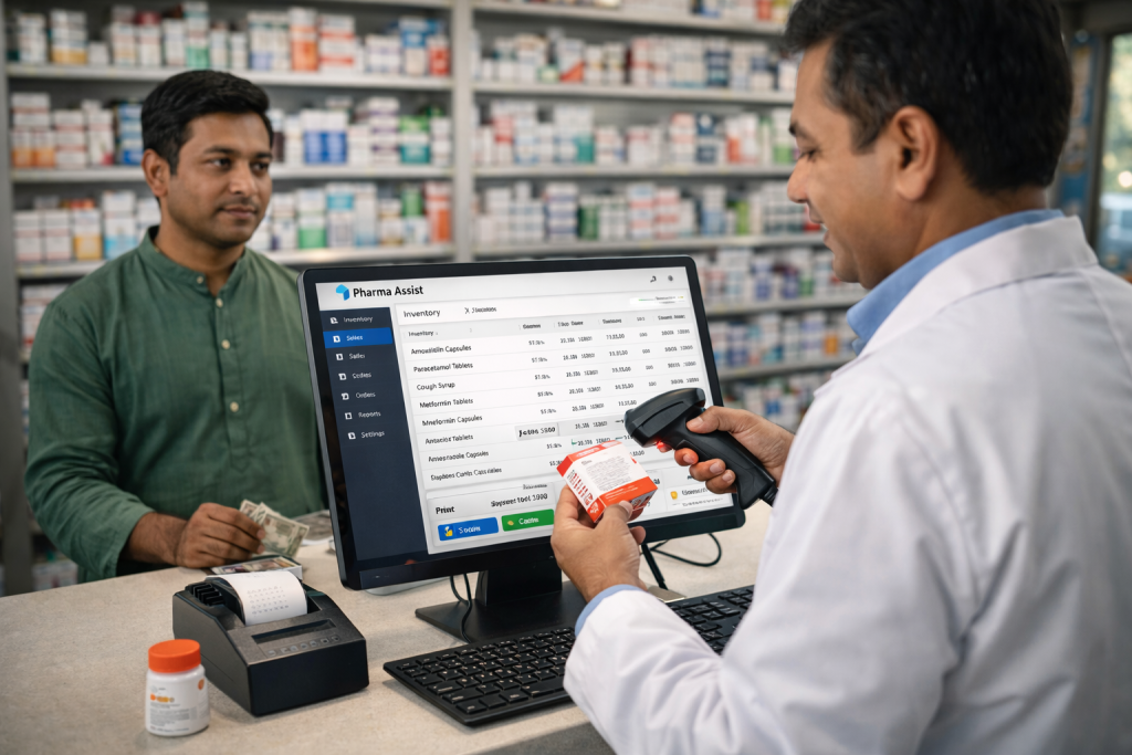 বাংলাদেশের বেশিরভাগ ফার্মেসি এখনও পুরনো পদ্ধতিতে চলছে যা সময়, অর্থ ও কাস্টমার হারানোর কারণ।